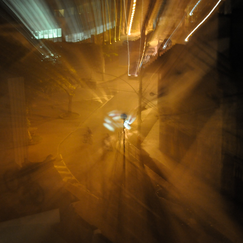 Hemkommen, med det dyra och bra-iga objektivet i hand, monterar jag det så på ett kamerahus (precis – hyfsat bra, tungt och dyrt) och går så ut för att prov-skjuta, bland annat genom att, å nu kommer det, röra kamera hej vilt och/eller zooma under exponeringstiden.